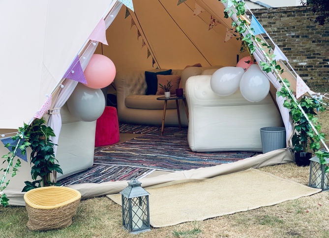 This sumptuous full canvas bell tent is available in medium or large set up sleeping up to 8 or seating up to 20 guests. It comes with power, heating, Wi-Fi, LED lighting and unlimited music as standard.